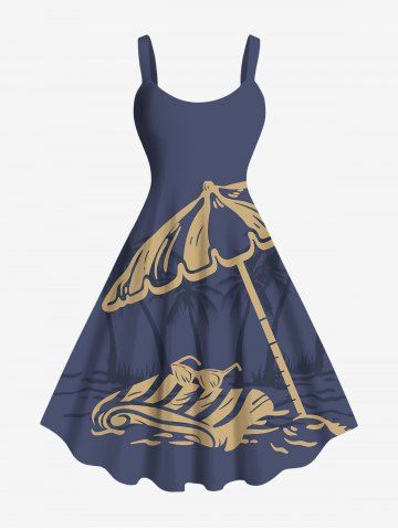 Robes Graphiques > Robe Parapluie Ligne A Cocotier et Soleil Imprimés de Plage de Grande Taille