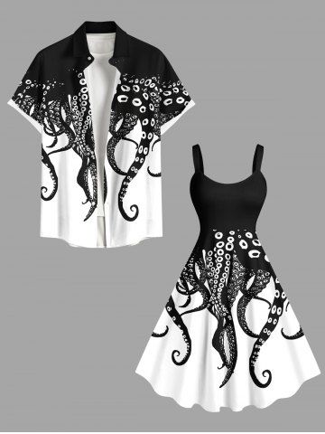 Robe Pieuvre Imprimée en Blocs de Couleurs de Grande Taille - Noir - Noir