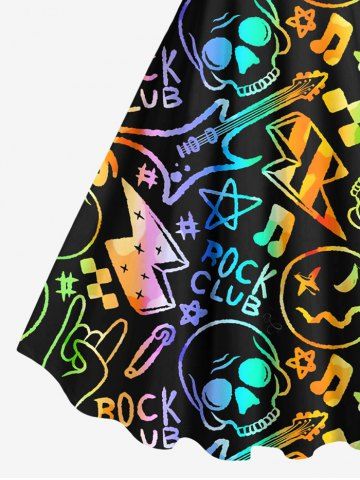 Robes Graphiques > Robe Pin-Up à Imprimé Crâne Etoile et Guitare Coloré Grande-Taille