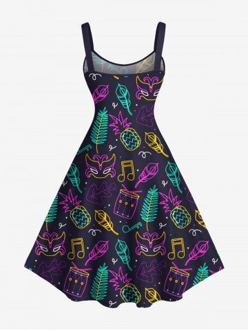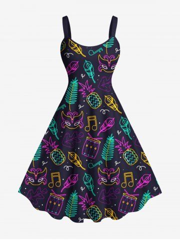 Robes Graphiques > Robe Pin-up Imprimé Feuilles et Ananas Tropicaux Grande Taille