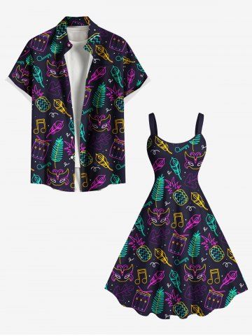 Robe Pin-up Imprimé Feuilles et Ananas Tropicaux Grande Taille - Noir - Noir