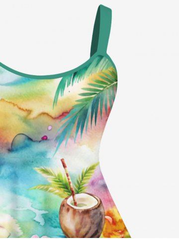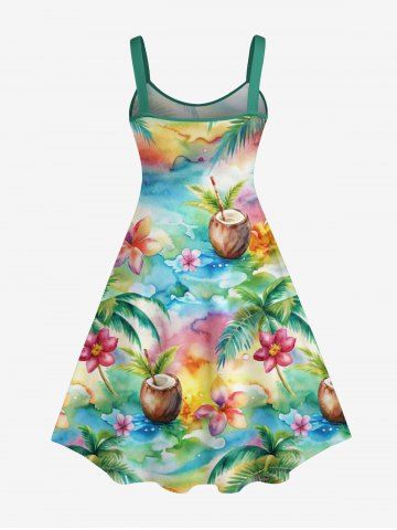 Robe débardeur grande taille à imprimé floral de cocotier, aquarelle colorée, dos nu, coupe trapèze, style hawaïen - Multi-a - 4x