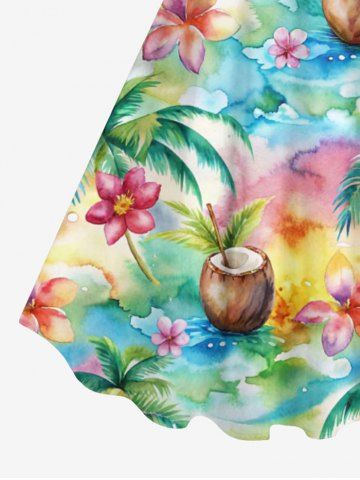 Robe débardeur grande taille à imprimé floral de cocotier, aquarelle colorée, dos nu, coupe trapèze, style hawaïen - Multi-a - 5x