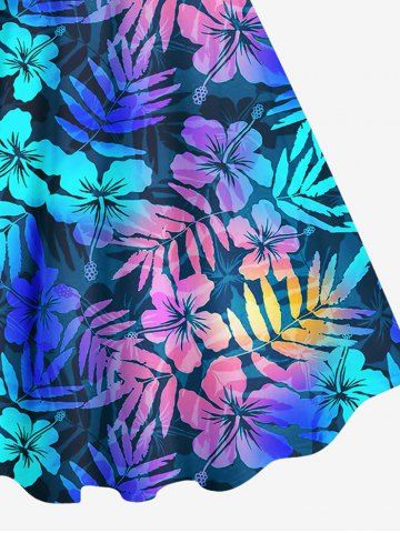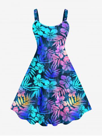 Robe Pin-Up Imprimée Feuille Tropicale Colorée Grande Taille à Dos Nu - Multi-a - 3x