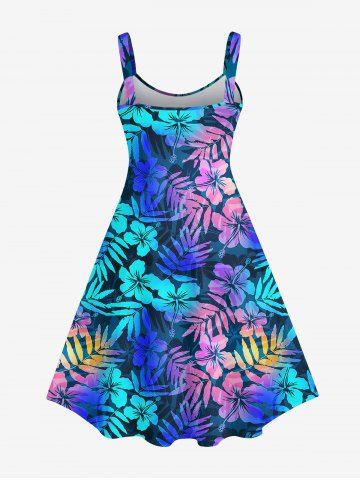 Robe Pin-Up Imprimée Feuille Tropicale Colorée Grande Taille à Dos Nu - Multi-a - 6x
