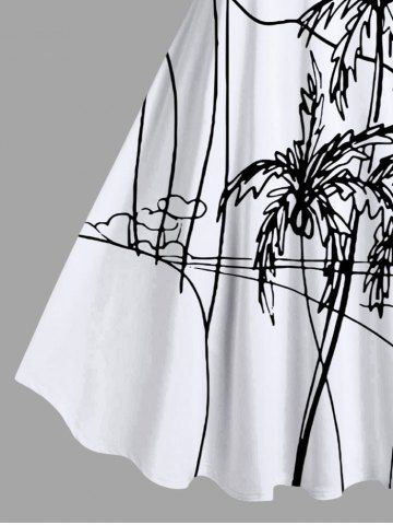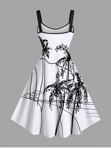 Robe Pin-Up Imprimée Grande Taille Bloc de Couleur Arbre de Noix de Coco - Blanc - Blanc