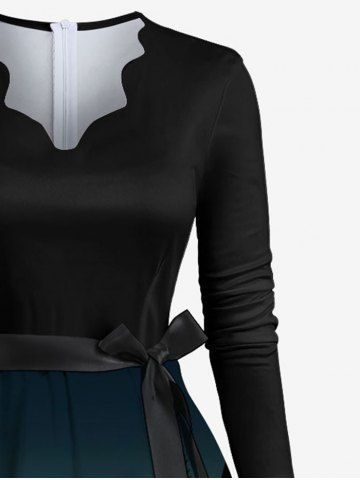 Robe Pin-Up Imprimée Oiseaux Cocotier à Col en V avec Ceinture Grande Taille - Noir - Noir