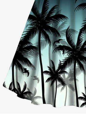 Robes Graphiques > Robe Pin-Up Imprimée Oiseaux Cocotier à Col en V avec Ceinture Grande Taille