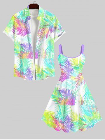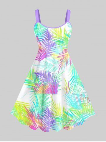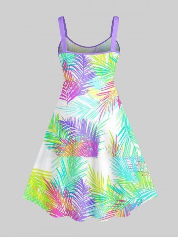 Robes Graphiques > Robe Taille Haute Imprimée de Feuilles Tropicales Colorées