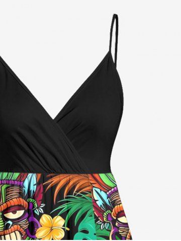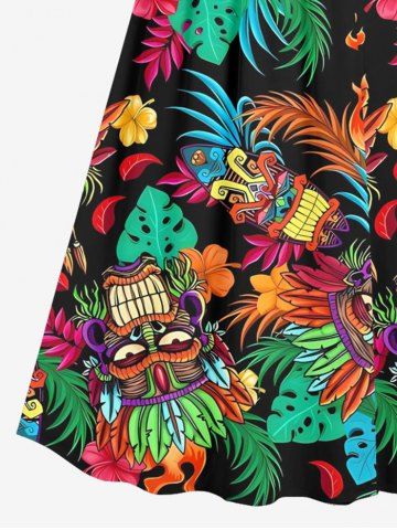 Robes Graphiques > Robe trapèze à imprimé floral tropical et feuilles d'hibiscus, style hawaïen, grande taille, style ethnique, masque et masque ethnique.