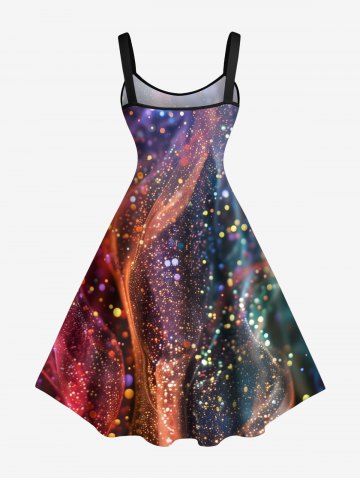 Robes Graphiques > Robe Trapèze à Pois avec Dégradé de Couleurs et à Imprimé Dégradé de Couleurs Grande-Taille