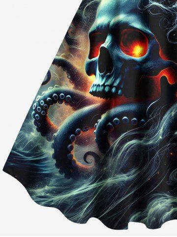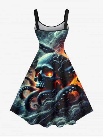 Robes Graphiques > Robe trapèze d'Halloween grande taille à imprimé tête de mort, poulpe et nuage pailleté