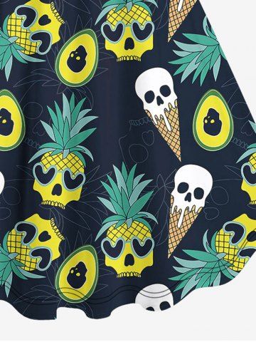 Robes Graphiques > Robe Trapèze D'Ananas Crâne Cœur Glace Imprimés de Grande Taille sans Dos