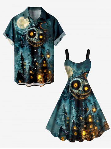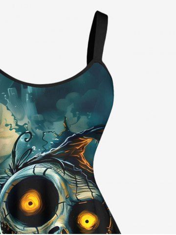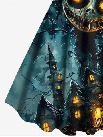 Robes Graphiques > Robe trapèze grande taille à imprimé crâne, monstre, lune, galaxie, château, Halloween