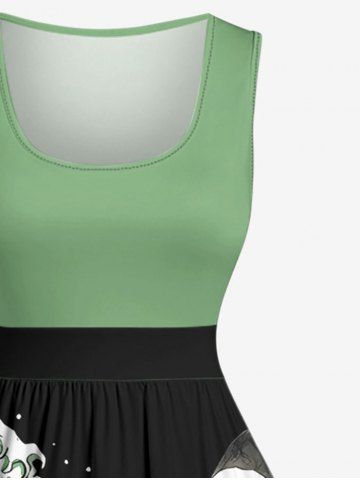 Robe trapèze grande taille à imprimé requins, vagues et voiliers, style hawaïen - Noir - Noir