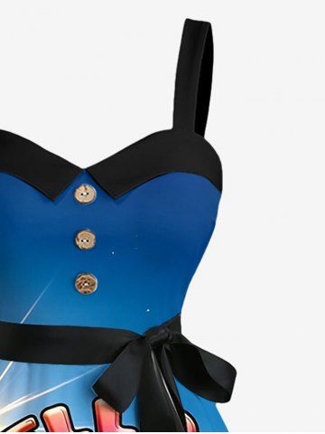 Robe trapèze grande taille à imprimé soleil et canards mignons, style hawaïen, boutonnée et avec ceinture amovible - Bleu - Bleu