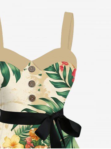 Robe trapèze grande taille à imprimé tropical de feuilles et d'hibiscus, style hawaïen, boutonnée et avec ceinture amovible - Multi-a - S