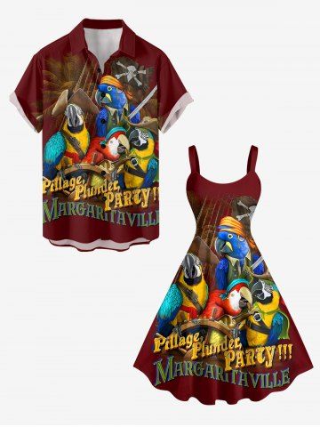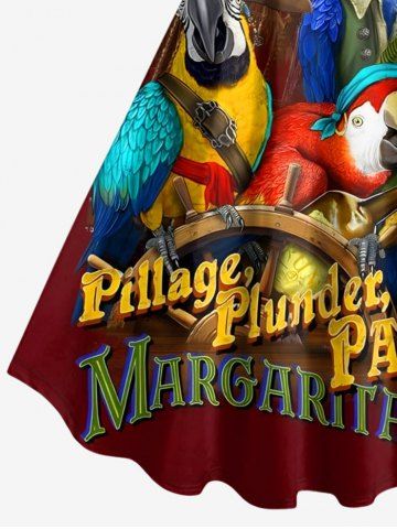 Robe trapèze grande taille imprimée cocotier, perroquet et lettres pirates, motif croisière hawaïenne - Rouge Foncé - 6x