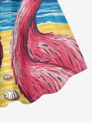 Robes Graphiques > Robe trapèze grande taille imprimée flamants roses et soleil sur la mer, style hawaïen