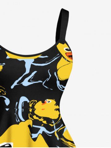 Robe trapèze hawaïenne à imprimé canard mignon grande taille - Noir - Noir