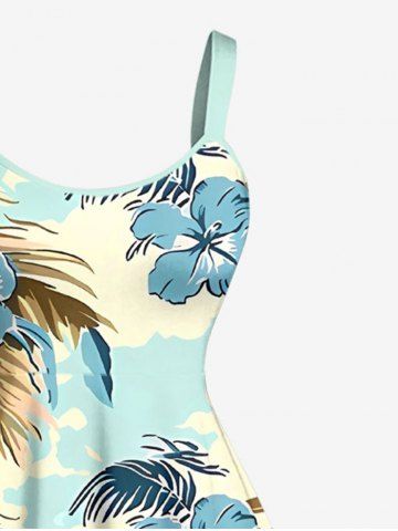 Robe trapèze hawaïenne à imprimé fleurs de cocotier et d'hibiscus grande taille - Bleu Clair - Bleu Clair