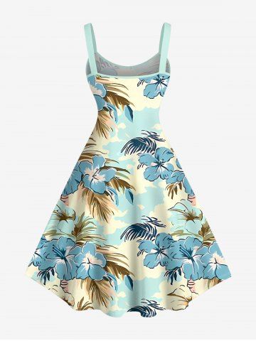 Robe trapèze hawaïenne à imprimé fleurs de cocotier et d'hibiscus grande taille - Bleu Clair - Bleu Clair