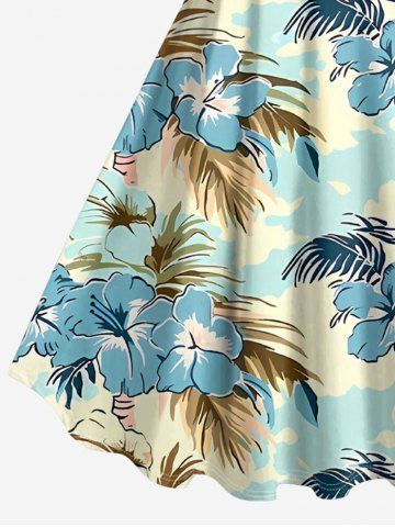 Robes Graphiques > Robe trapèze hawaïenne à imprimé fleurs de cocotier et d'hibiscus grande taille