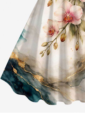Robes Graphiques > Robe trapèze hawaïenne à imprimé floral et feuilles ombré grande taille