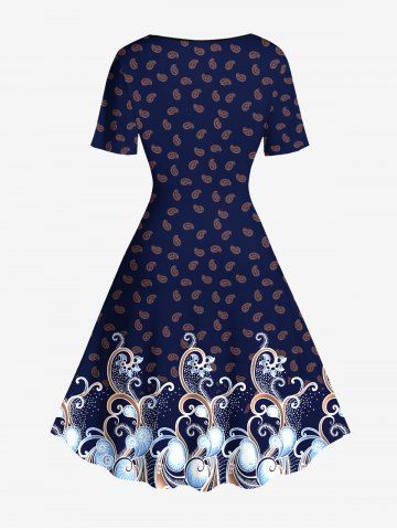 Robes Graphiques > Robe trapèze hawaïenne à imprimé floral ethnique et cachemire grande taille