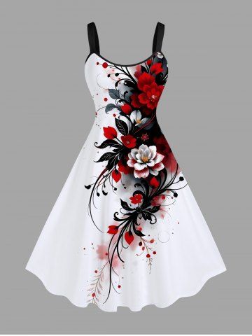 Robe trapèze hawaïenne à imprimé floral, feuilles et branches grande taille tie-dye - Blanc - Blanc
