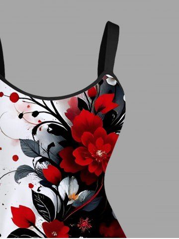 Robes Graphiques > Robe trapèze hawaïenne à imprimé floral, feuilles et branches grande taille tie-dye