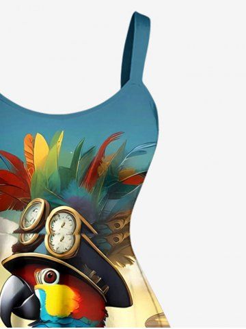 Robe trapèze hawaïenne à imprimé moteur Parrot Pilot grande taille - Bleu Ciel - Bleu Ciel