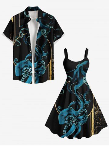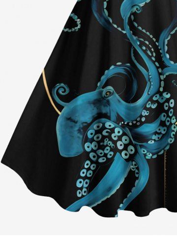 Robes Graphiques > Robe trapèze hawaïenne à imprimé pieuvre grande taille