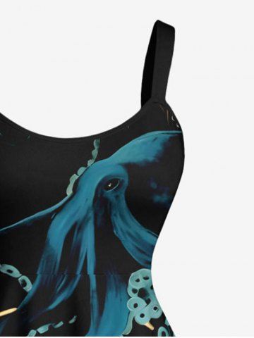 Robe trapèze hawaïenne à imprimé pieuvre grande taille - Noir - Noir