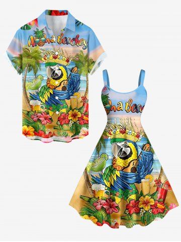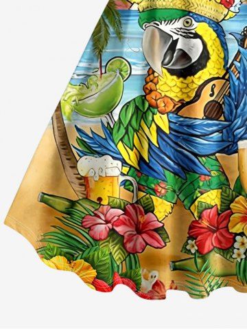Robes Graphiques > Robe trapèze hawaïenne à imprimé tropical : cocotiers, feuilles d'hibiscus, perroquets et fleurs de hula, grande taille