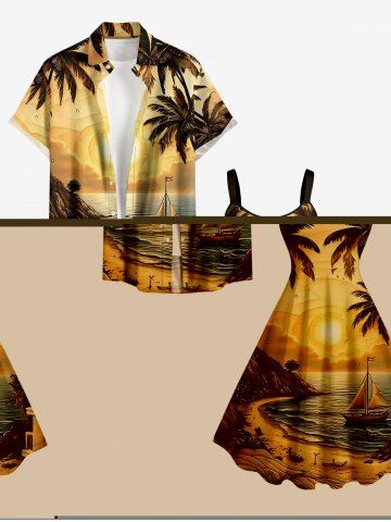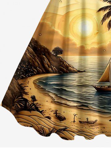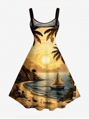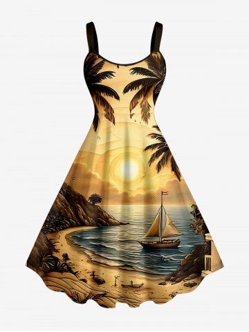Robes Graphiques > Robe trapèze hawaïenne grande taille à imprimé cocotier, voilier et soleil