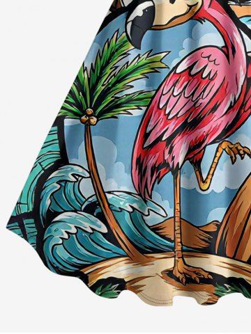 Robes Graphiques > Robe trapèze hawaïenne grande taille à imprimé cocotiers, flamants roses et vagues