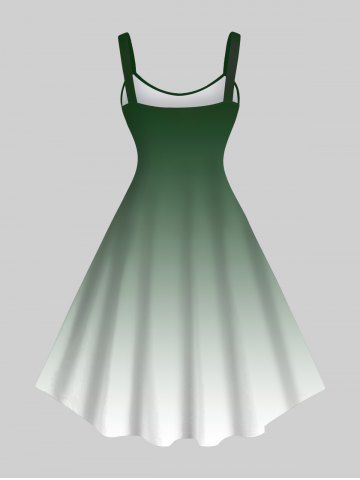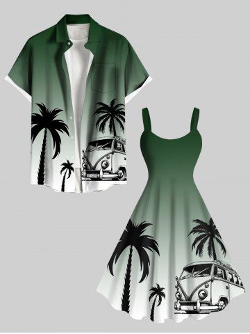 Robe trapèze hawaïenne grande taille à imprimé dégradé et motif cocotier, bus - Vert - Vert