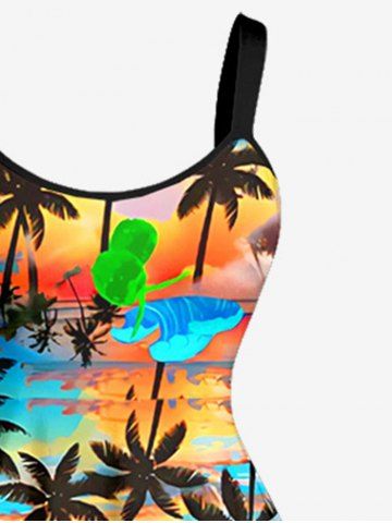Robe trapèze hawaïenne grande taille imprimée cocotiers, nuages et coucher de soleil ombré - Multi - Multi