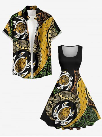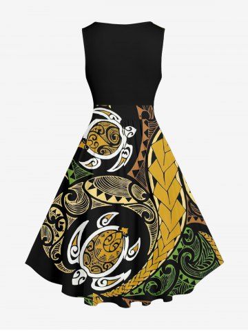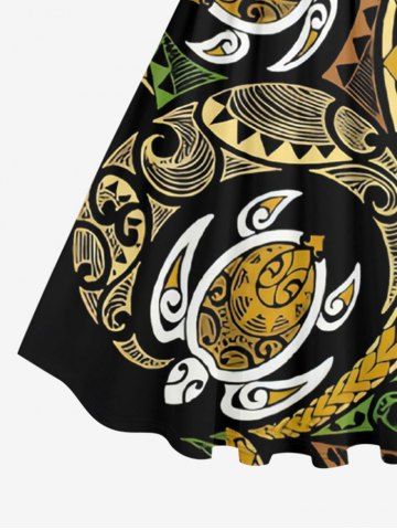 Robes Graphiques > Robe trapèze hawaïenne vintage à imprimé tortue, grande taille