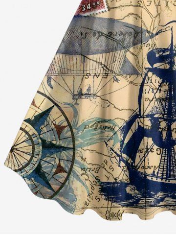 Robes Graphiques > Robe trapèze imprimée voilier grande taille, style croisière hawaïenne