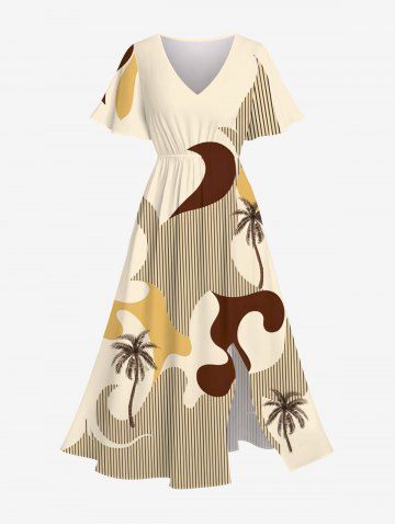 Robes Graphiques > Robe Trapèze Mi-longue Imprimé Cocotier et Lune avec Poche Grande Taille