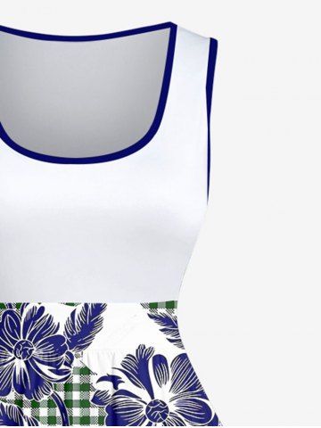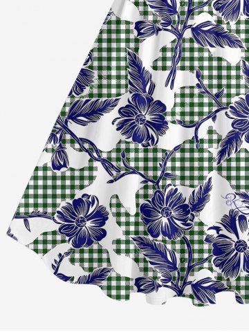 Robes Graphiques > Robe trapèze vintage hawaïenne à imprimé floral et à carreaux grande taille