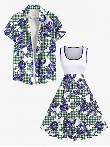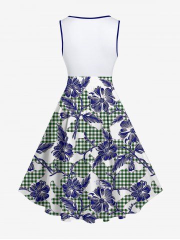 Robes Graphiques > Robe trapèze vintage hawaïenne à imprimé floral et à carreaux grande taille