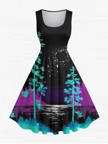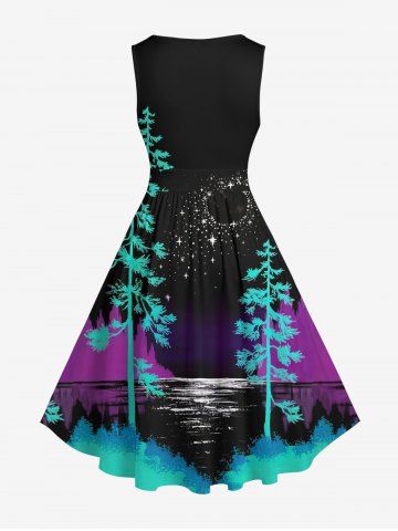 Robes Graphiques > Robe Trapèze Vintage Imprimé Arbre Lune et Mer Grande Taille