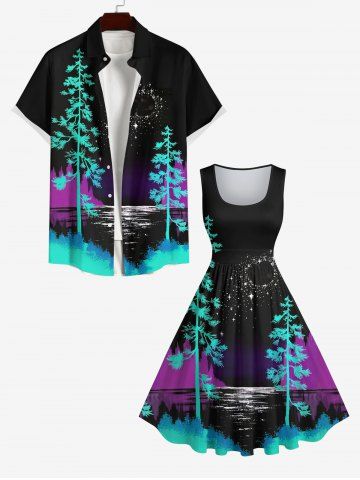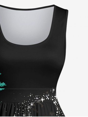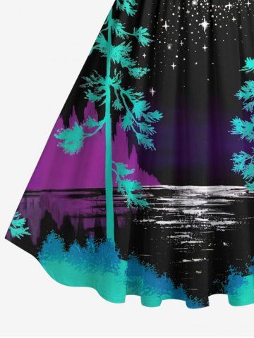 Robe Trapèze Vintage Imprimé Arbre Lune et Mer Grande Taille - Noir - Noir