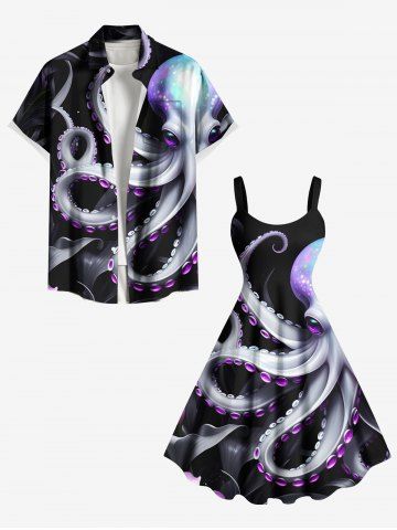 Robe Tropicale Ligne A de Grande Taille à Paillettes - Noir - Noir