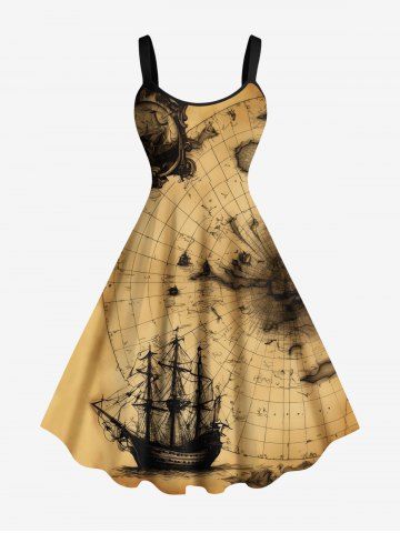 Robes Graphiques > Robe Vintage Cocon Grande Taille Imprimé Carte Universelle sans Manches
