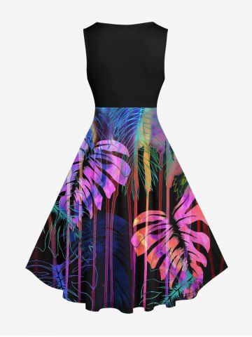 Robes Graphiques > Robe Vintage Feuille Tropicale Colorée Imprimée de Grande Taille