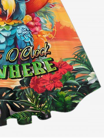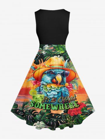 Robes Graphiques > Robe vintage grande taille à imprimé perroquet, jus de fruits, fleurs et feuilles tropicales, style hawaïen des années 1950